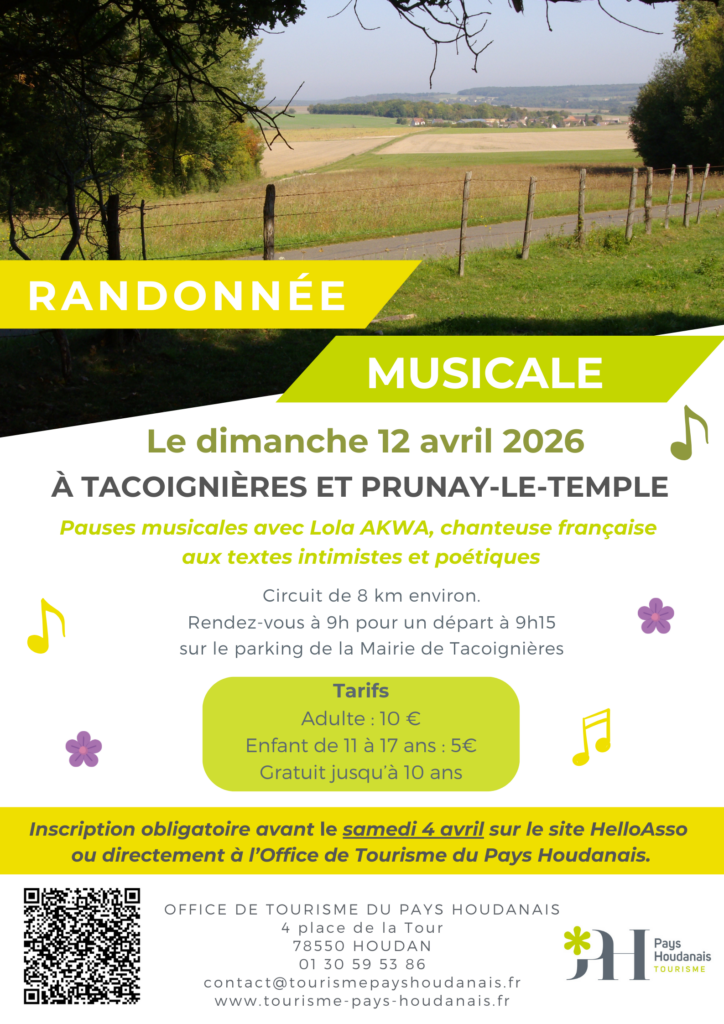 Randonnée musicale à Tacoignières le 12 avril 2026 à 9h00.